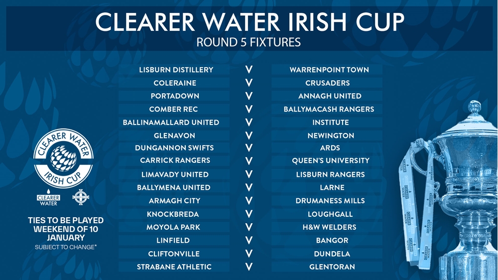 The draw has been made for the fifth round of the Clearer Water Irish Cup.