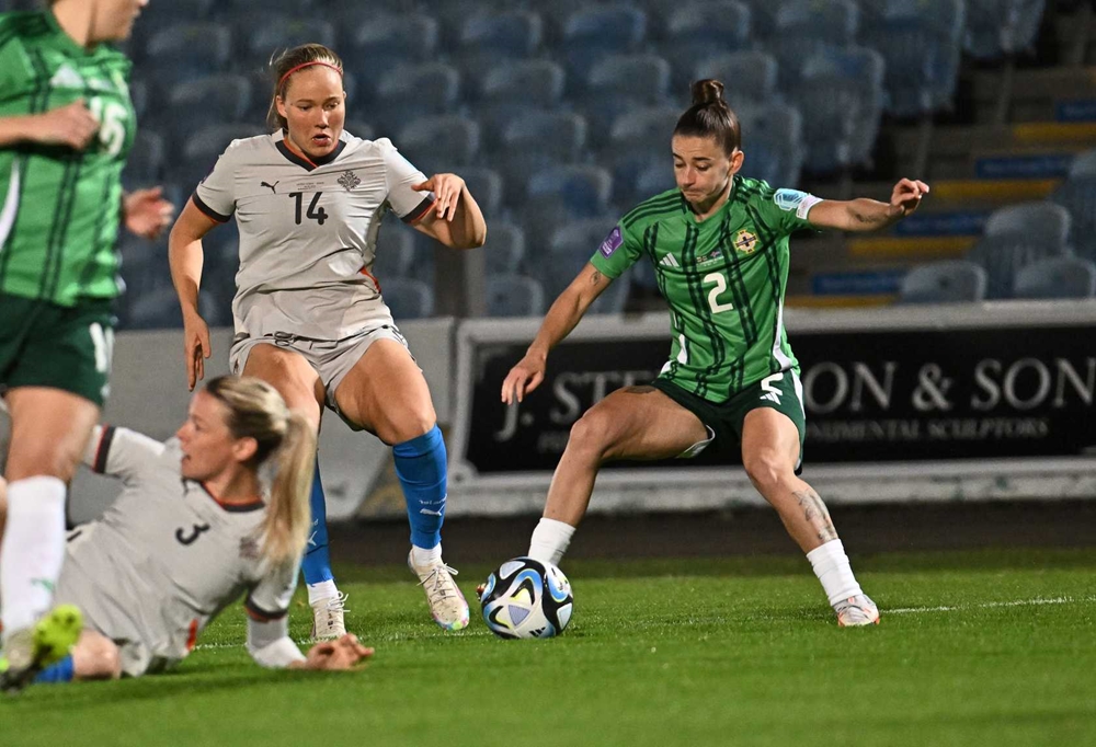 Then attacker Hlin Eiriksdottir had a shot cleared off the line by Northern Ireland captain Nadene Caldwell.