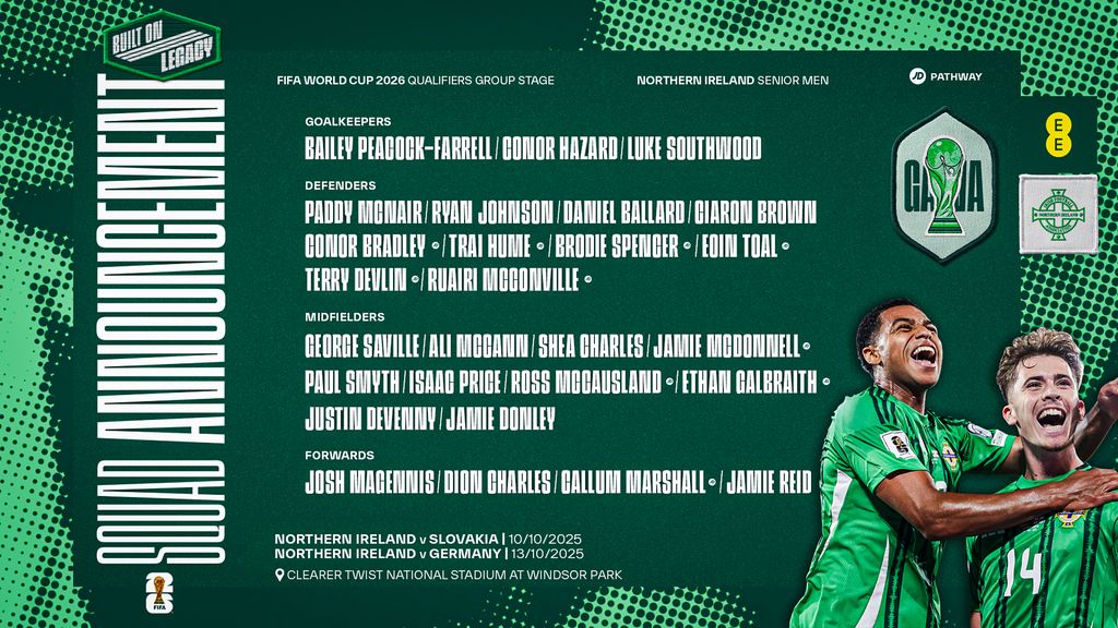 Michael O’Neill has announced his squad for this month’s FIFA World Cup 2026 home qualifiers against Slovakia and Germany.