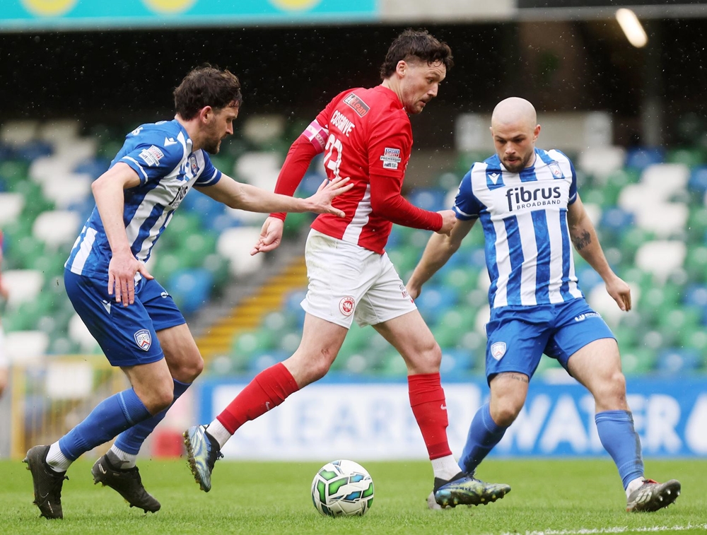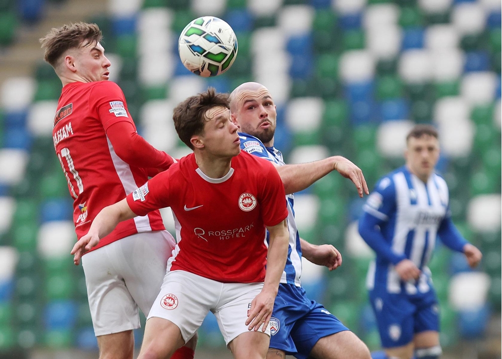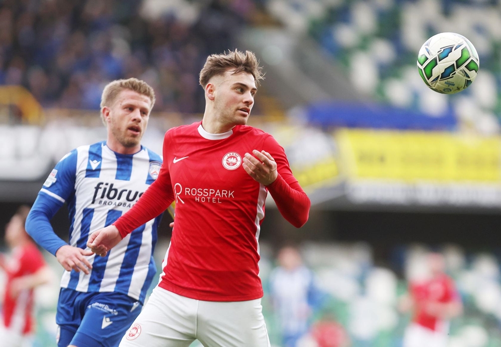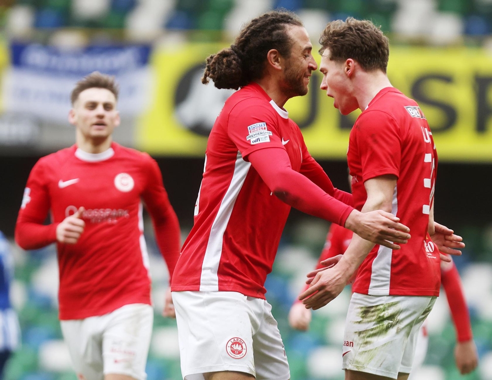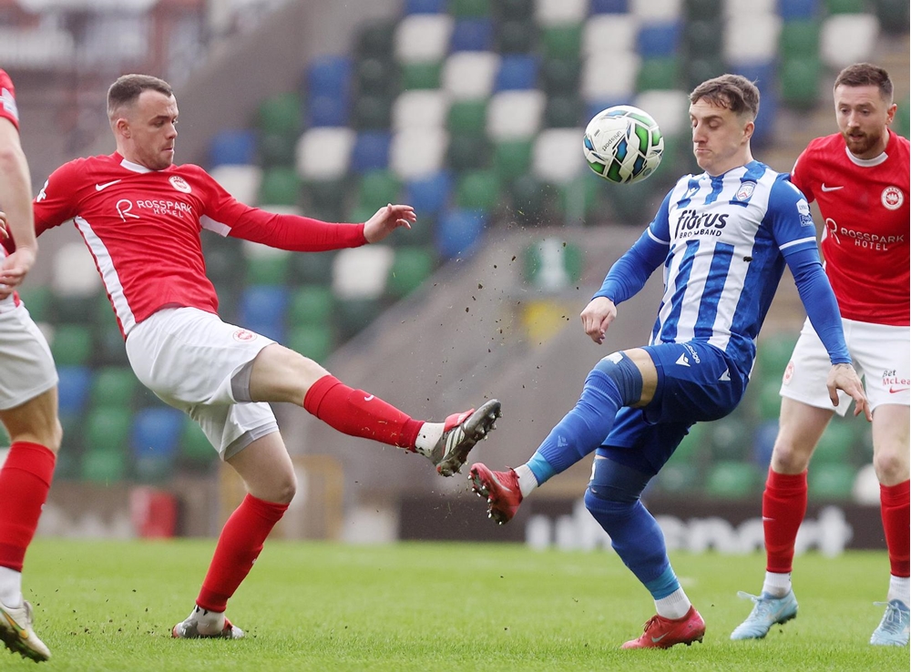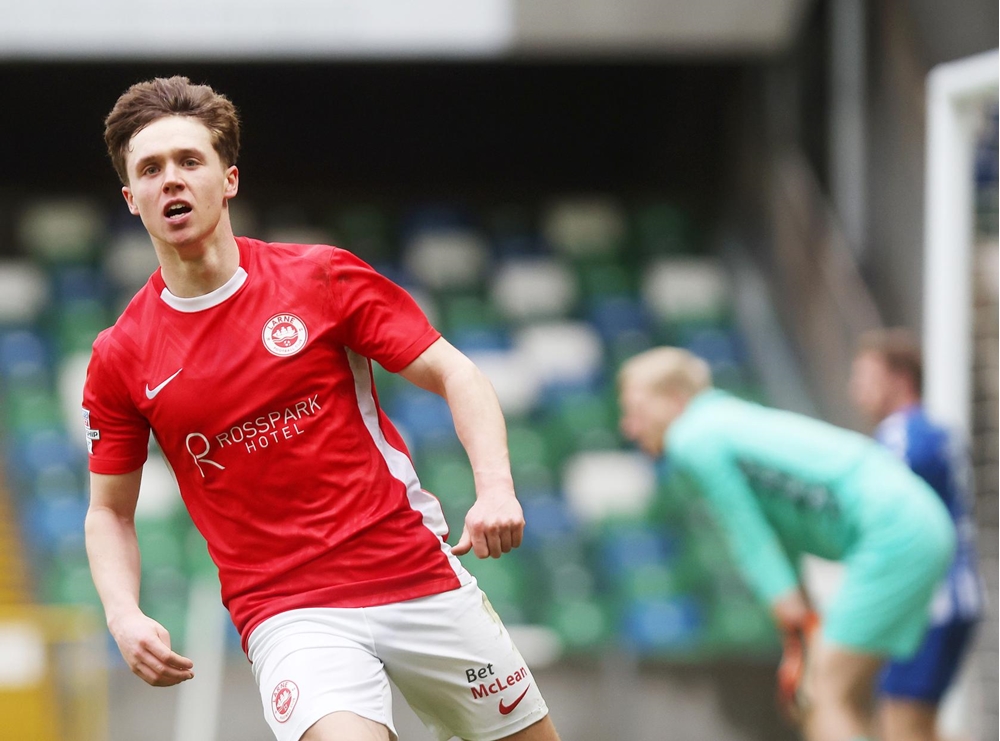 Larne equalised on 62 minutes. A low cross into the area by Jordan McEneff found Lusty seven yards out. The winger’s initial effort was blocked by McDonald but he pounced on the loose ball and tucked it into the bottom corner.
