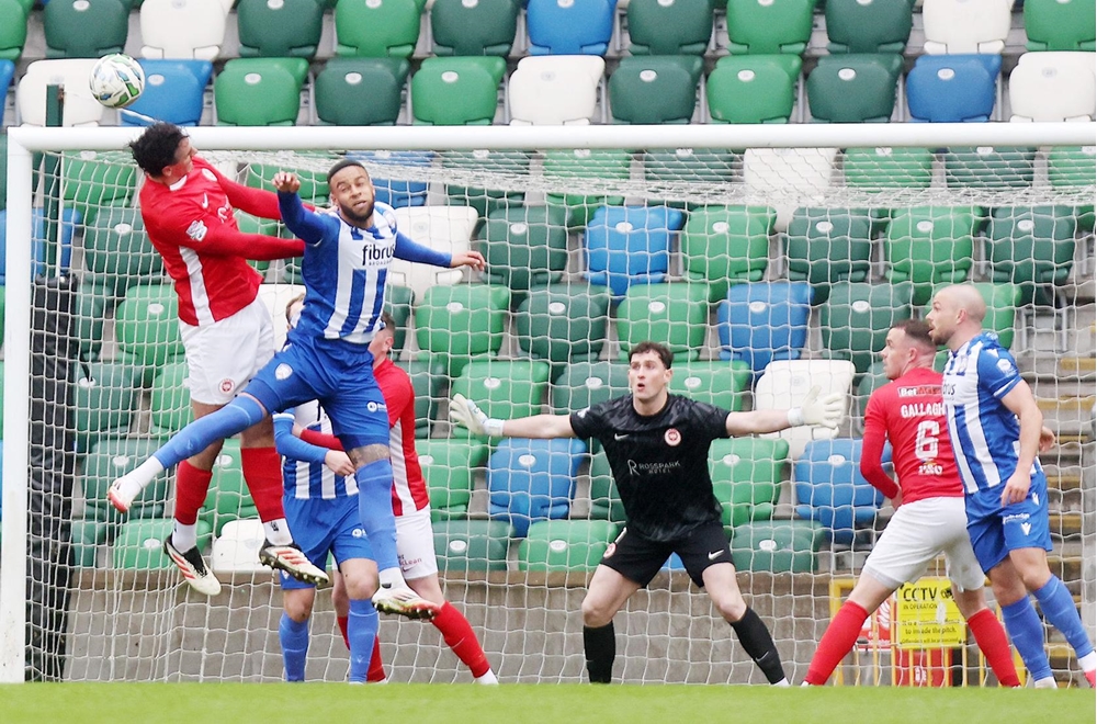 Man of the match Schofield pulled off another great save on 54 minutes. A wicked Tomas Cosgrove cross into the danger zone bounced off Coleraine midfielder Rowan McDonald and Schofield dived full length to push the ball away.