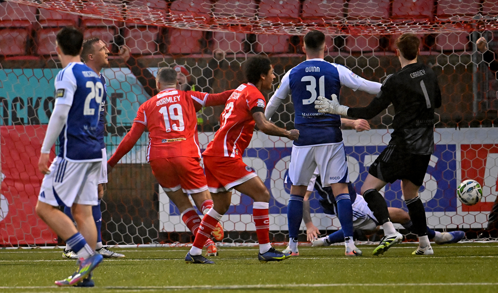 Image: Jonny Addis powers home Cliftonville's stoppage time winner