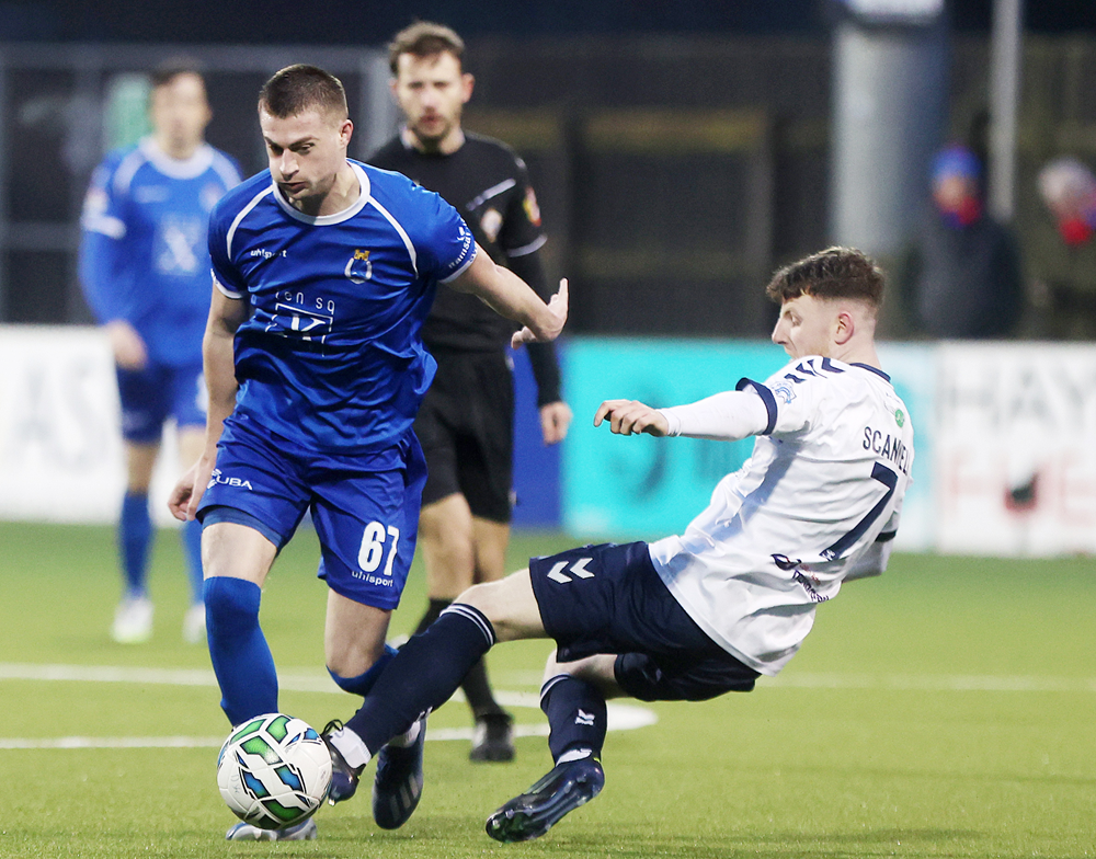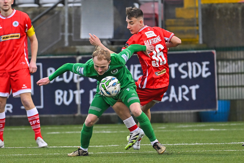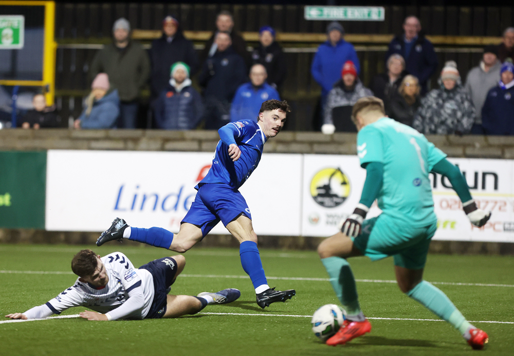 The 21-year-old struck for the home side just a couple of minutes from the break with a precise header into the bottom left after connecting with Dane McCullough’s cross from the right.