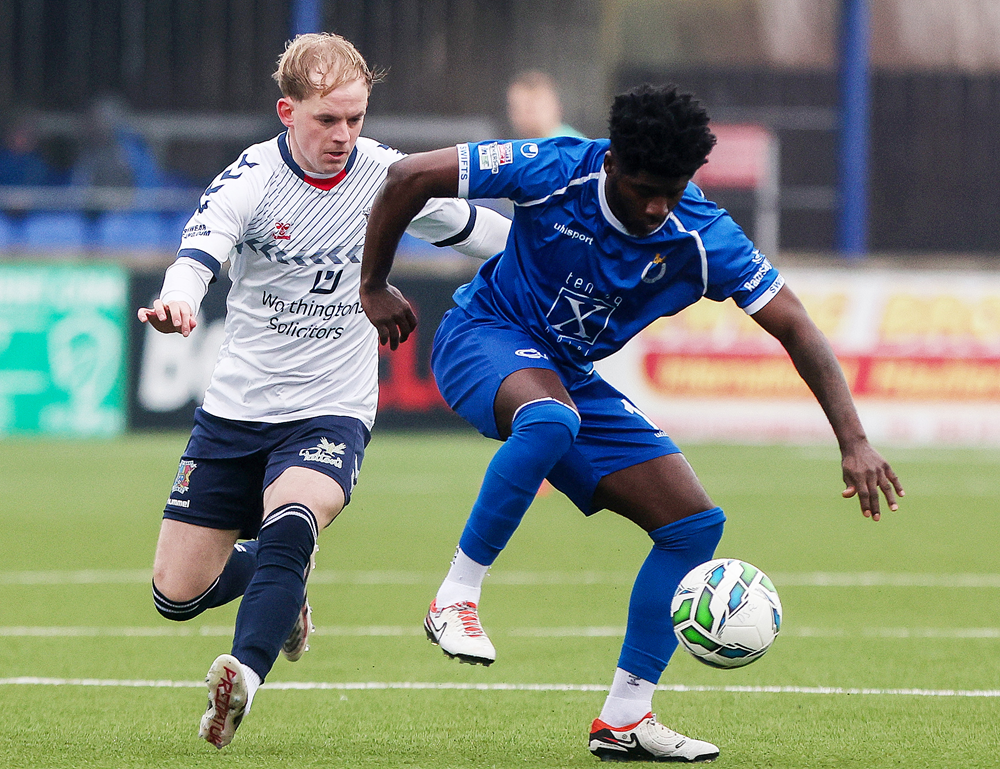 Sean McAllister opened the scoring with just over a quarter-of-an-hour on the clock with a powerful header before, on 25 minutes, Junior Uzokwe doubled up with a glancing header past Marc Matthews.