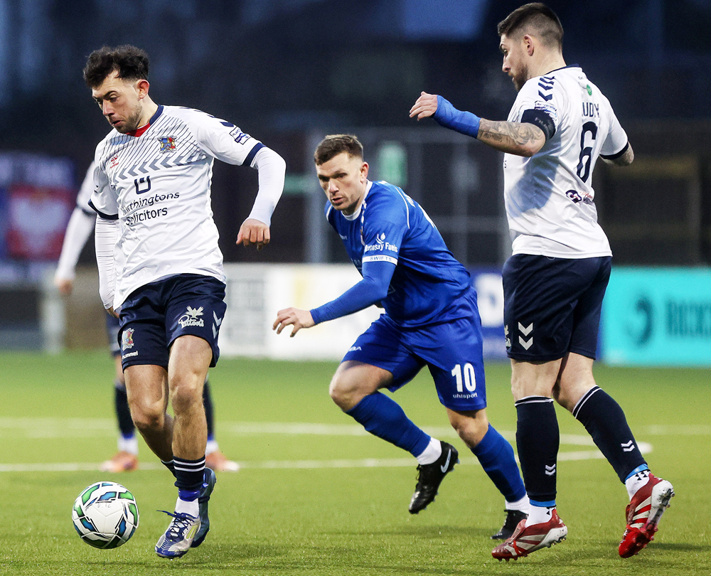 Joe Crowe found the net with a powerful volley to restore Carrick’s two-goal advantage just before the hour, with Matthew Snoddy adding a fourth not long after that before Danny Gibson wrapped the scoring up on 78 minutes from close range.