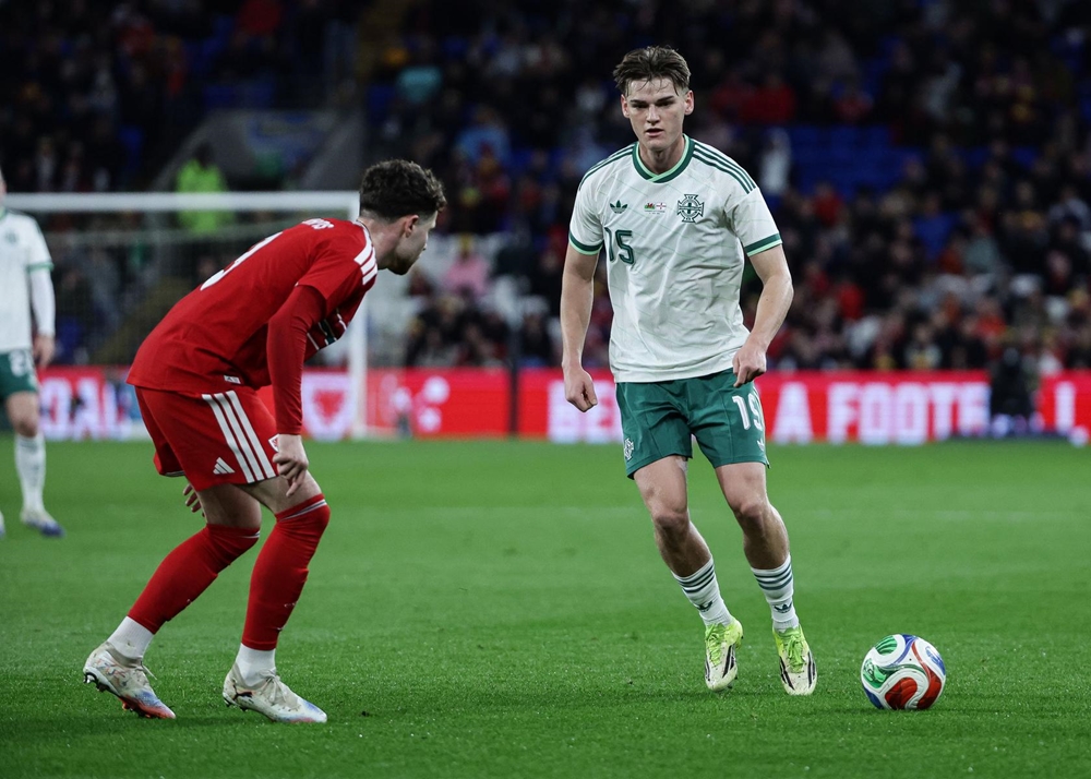 A minute later central defender Tom Atcheson was introduced from the bench to make his senior debut for Northern Ireland. And he was soon in the thick of it making a clearance.