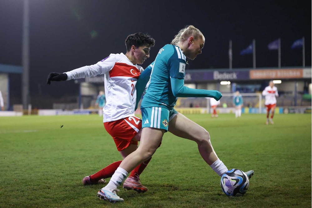 On 43 minutes Turkiye striker Kader Hancar slipped the ball past Northern Ireland captain Laura Rafferty and bore down on goal, however she dragged her shot wide of the post. Moments later Topcu scooped an effort wide.
